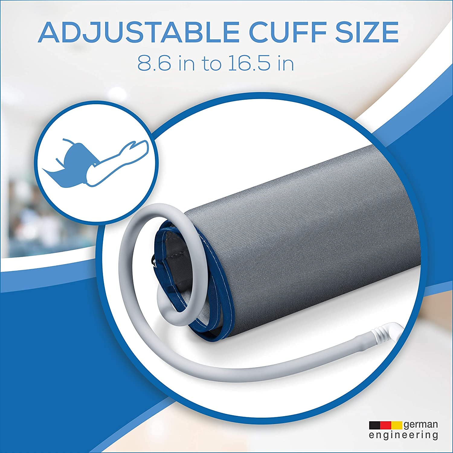✔ Large Upper Arm Cuff (22-42cm) – ছোট থেকে বড় হাতের সবার জন্য উপযুক্ত