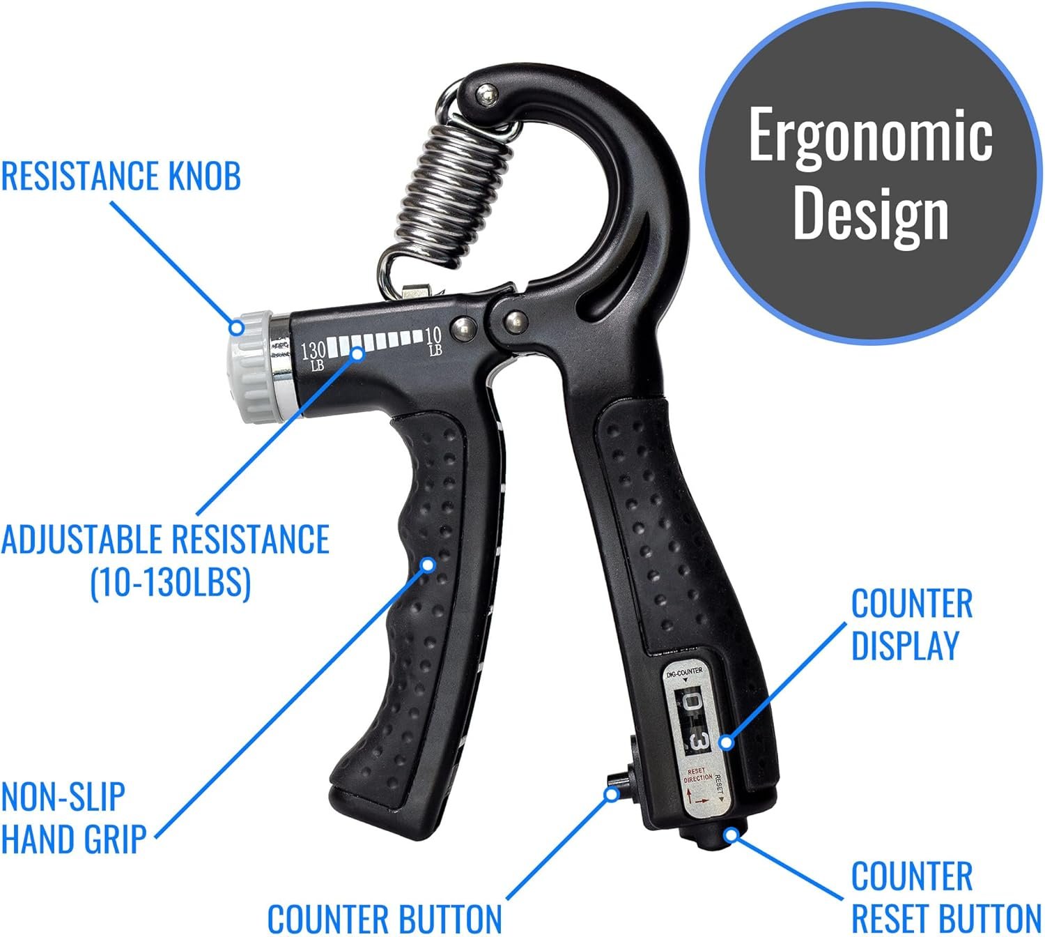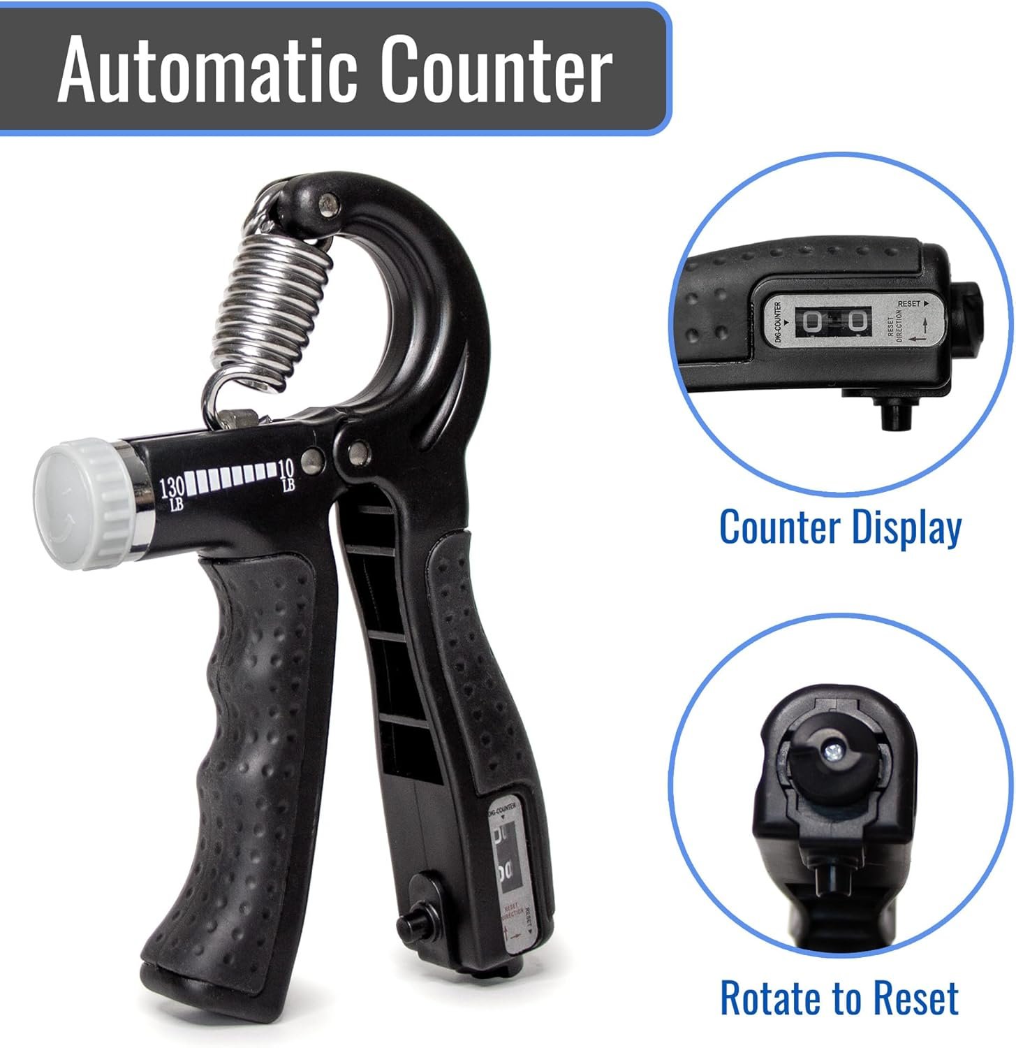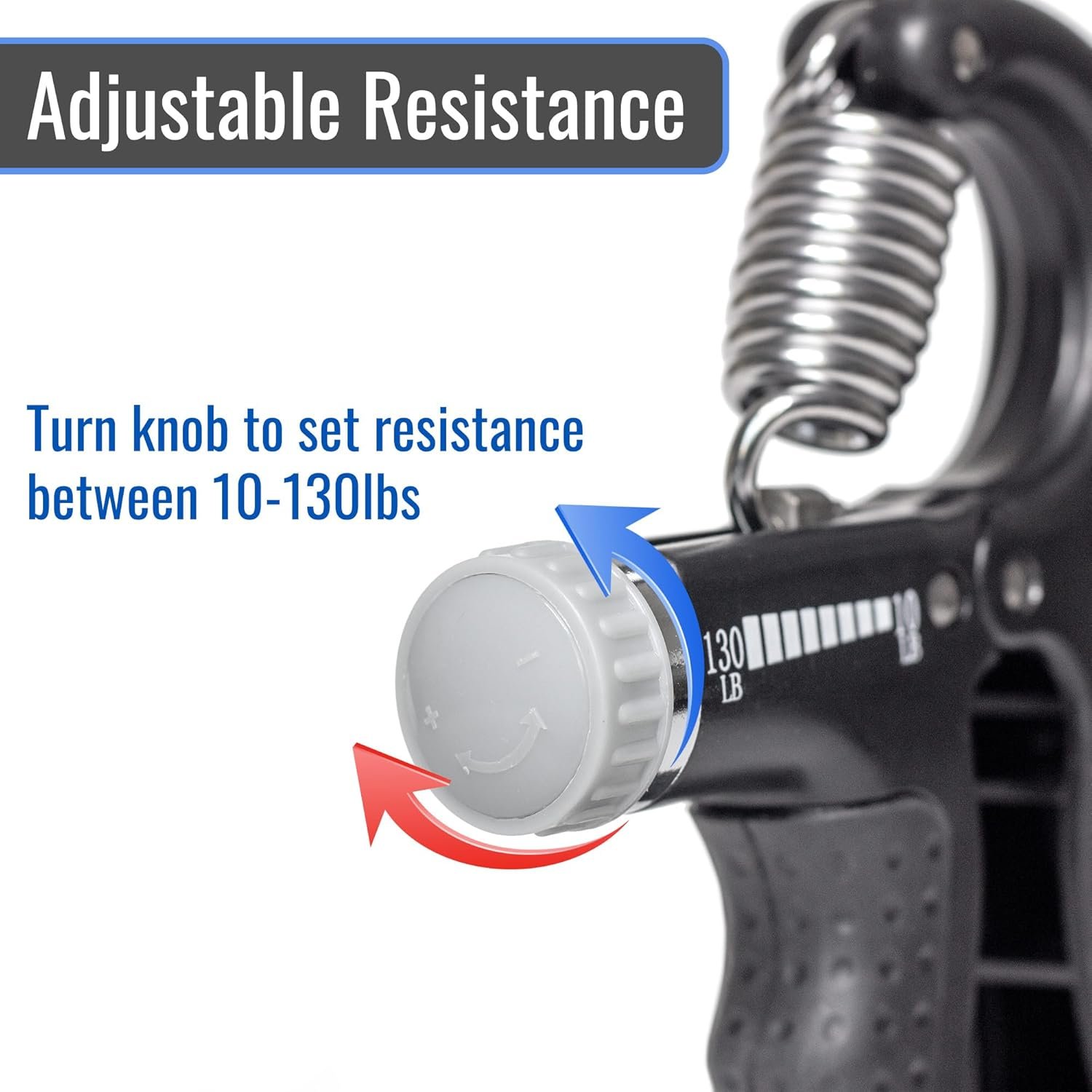 Compact Hand Exercise Grip Strengtheners with Adjustable Weight Resistance from 10-130lbs, Grip Tracker keeps Track of Number of Squeezes, FSA & HSA Eligible