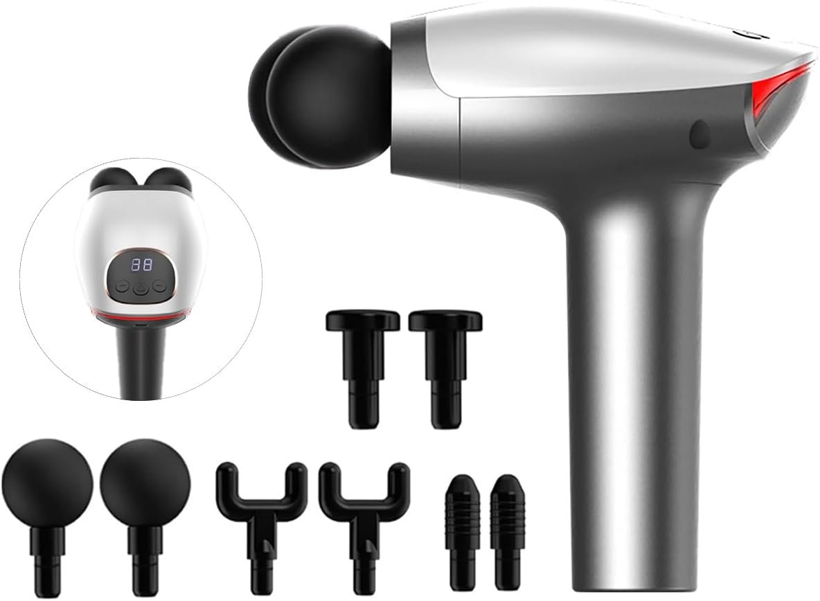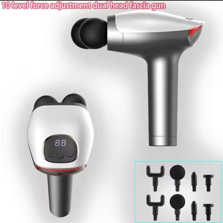 Deep Tissue Massage Gun, Double-Head Massage Gun Handheld Muscle Massager with 8 Massages Heads for Pain Relief & Circulation in Neck, Back, Leg, Shoulder and Body, Portable and Super Quiet