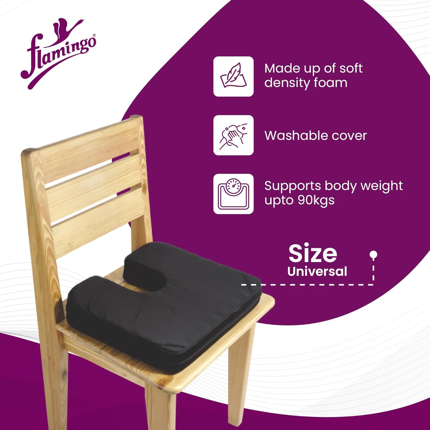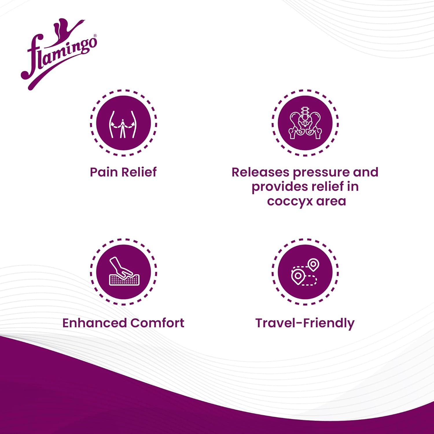 Flamingo Orthopedic Coccyx Pillow Tailbone Seat Cushion | Non-Slip High Density Memory Foam to Relieve Sciatica, Back Pain Relief from Tailbone, Sciatica & Lower Back Chairs & car Seats | Soft |