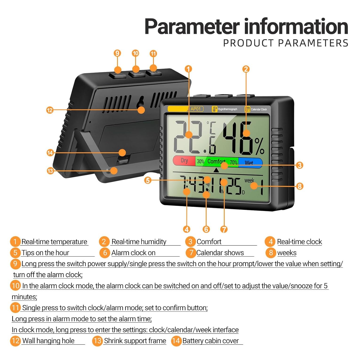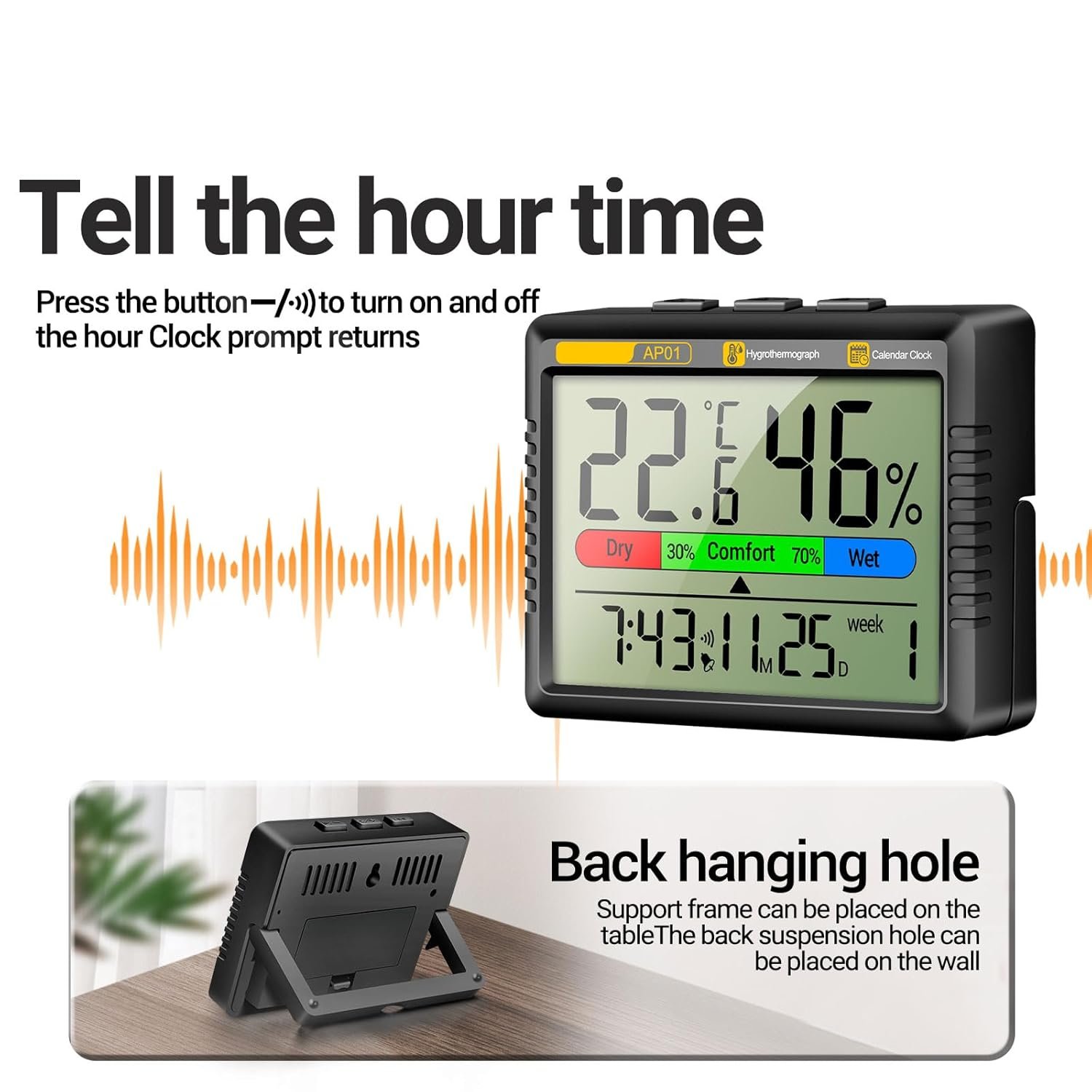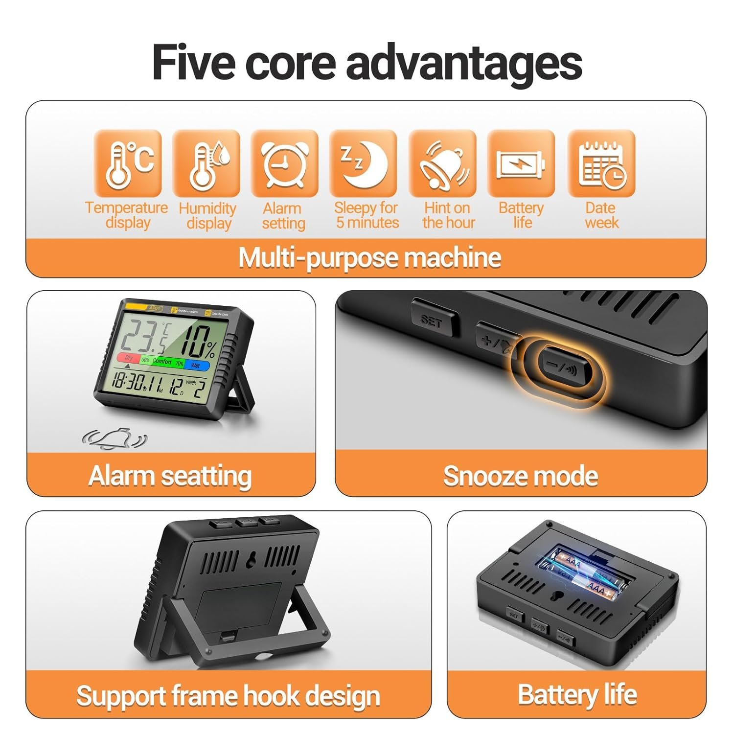 High Accuracy Thermometers Digital Hygrometer Tester with Intelligent Clock Function Suitable for Bedroom and Office Use