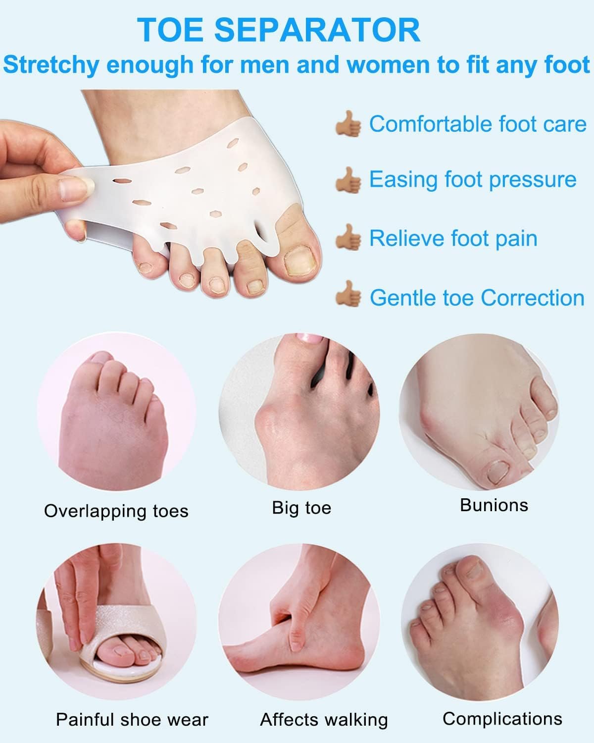 Inralimot Toe Spacers Separators to Correct Bunions, Forefoot Pads, Hammertoe Corrector Big Toe Straighteners for Women Men Foot Pain Relief