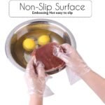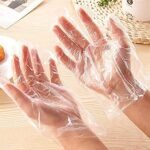 - Disposable gloves Transparent colourThese gloves are for one time use to clean surfaces, vegetables, collect parcel / groceries safety100% brand new and high quality.These gloves are food safe, thus suitable for food handling in hotels & kitchens etc. Best to Keep your hands clean while doing paint job or hair dye job also. Best for : Home, Kitchen, Hotels, Hospitals, Clinics, Beauty Parlor, Saloons..etc…Disposable gloves 100Pcs(50 Pair)