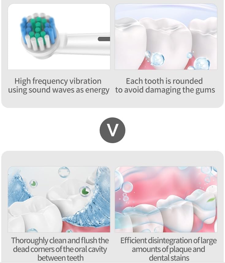 - 1.Magnetic Levitation Sonic Dual Drive Technology: adopts magnetic levitation motor + high-frequency sonic vibration (38,000 times/minute), round head bristles 360° wrapped cleaning, 40% higher cleaning efficiency than ordinary toothbrushes, 65% less residue between teeth.