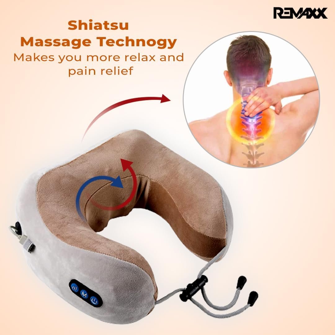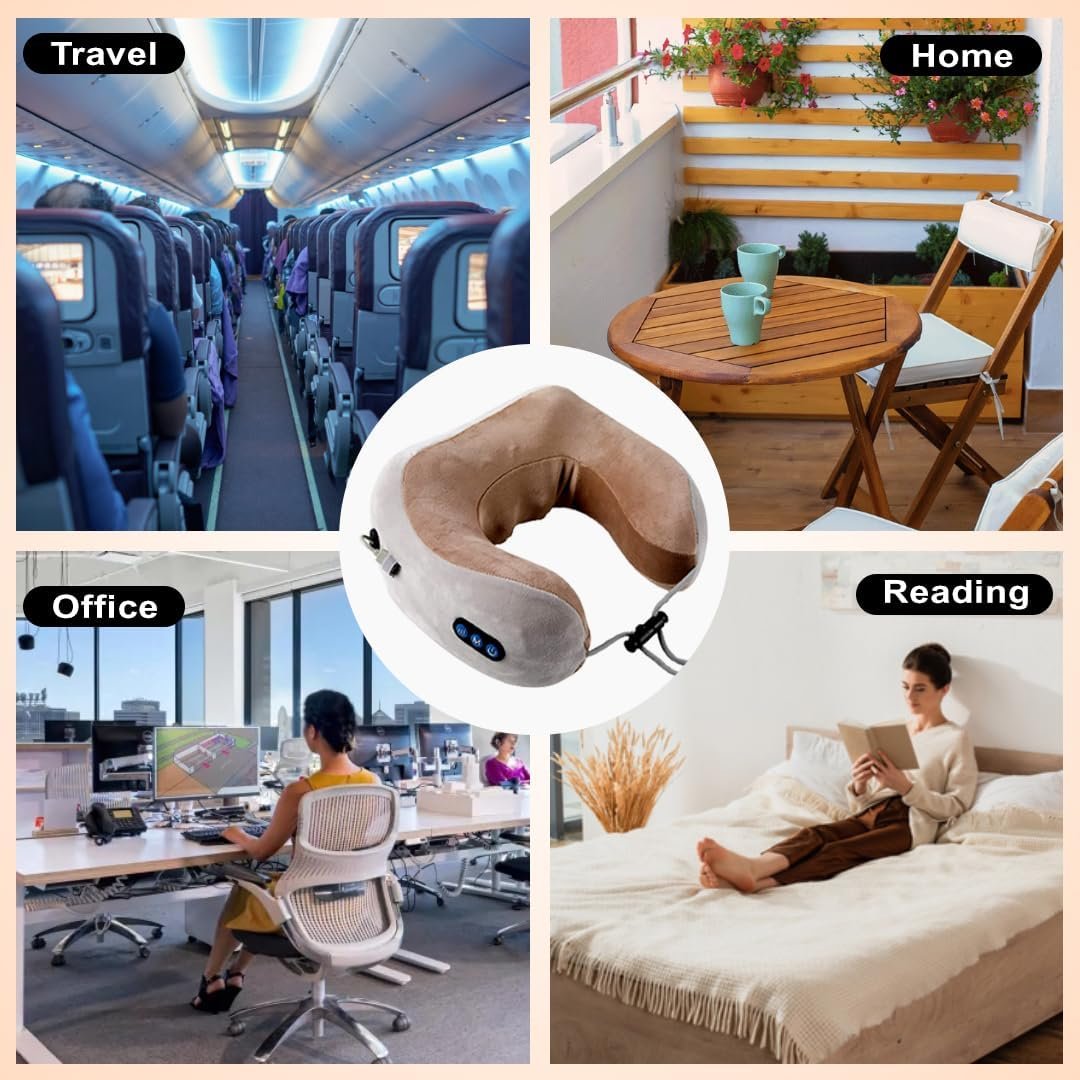 Rechargeble U-Shaped Travel Neck Massage Pillow | Three Speed Intensity Modes | Therapeutic Vibration | Cervical Pain Relief | Deep Kneading Massage | Memory Foam