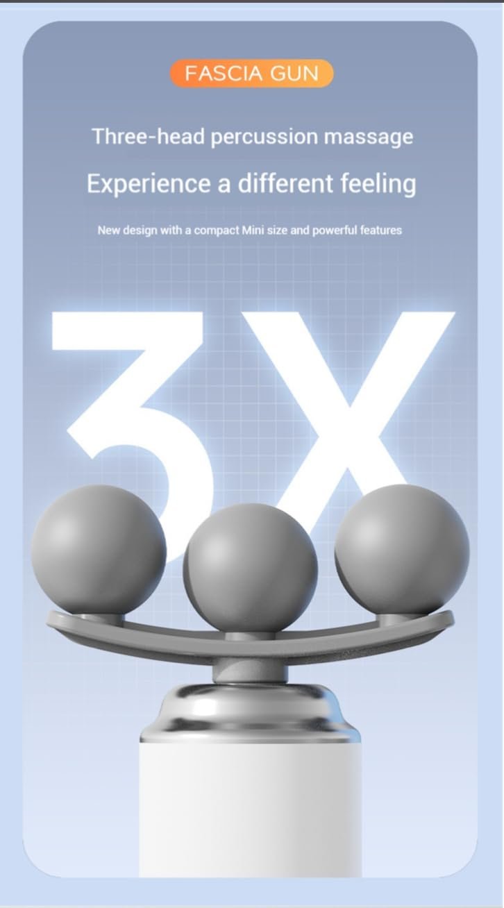 Triple head Massage Gun Pro+ Mini, Portable Massage Gun, 3-Head Percussion, 6-Speed Settings, Deep Tissue Muscle Relief, 2300-3200RPM, with 9 Attachments, 1200mAh Battery
