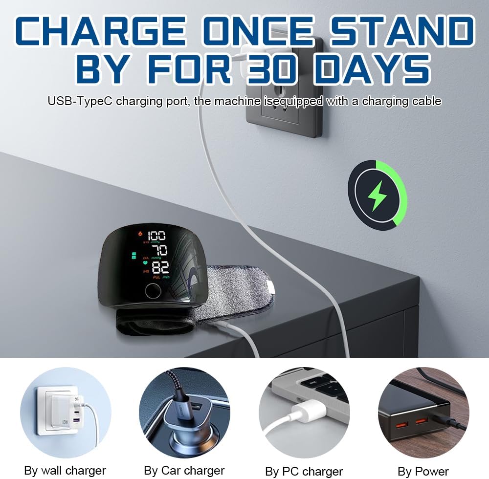 - Dual memory mode: the wrist blood pressure monitor has a dual user recording user measurement data system, and each user can record the latest 99 data, which is convenient to track your blood pressure health for yourself and your family. The digital wrist blood pressure monitor with LCD screen uses a USB power supply method that eliminates the trouble of frequent battery replacement.